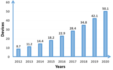 Graph 1 clearly shows connected devices in World since 2012 till 2020, there are lots of graphs which tries to explain same point with this, for example in 1950 only 5000 devices were connected and in 2020 the number is .30 billion More than 100 billion devices will be connected in 2050 regarding to some researches.