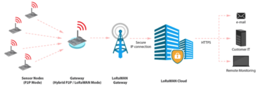 Graph 4 is a sample architecture of an LPWAN system. Devices are connected to gateway, than LoraWAN Gateway. Finally system can reach central system securely with https protocol.