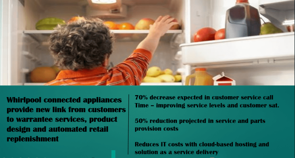 Second use case is providing new link from customers to warrantee services,. With a projects using Watson IoT platform 70% decrease expected in customer service call time,