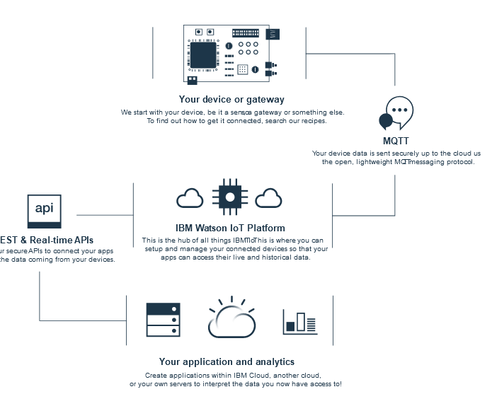 Securely receive data from and send commands to your devices. Platform do this using MQTT with TLS to secure all communication between your devices and IBM service.
