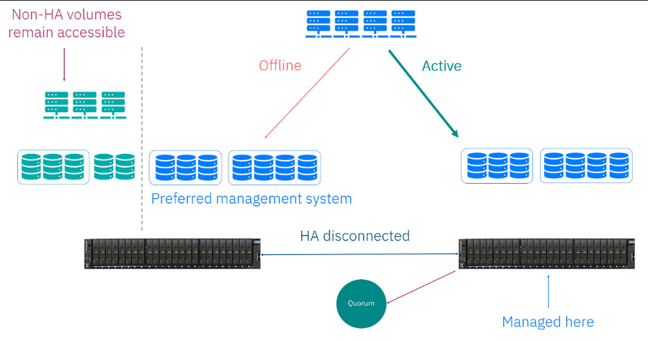 Politika bazlı yüksek erişilebilirlik (PBHA) sistemi, ana lokasyonun quorum bağlantısını kaybetmesi durumunda otomatik olarak devreye girer.